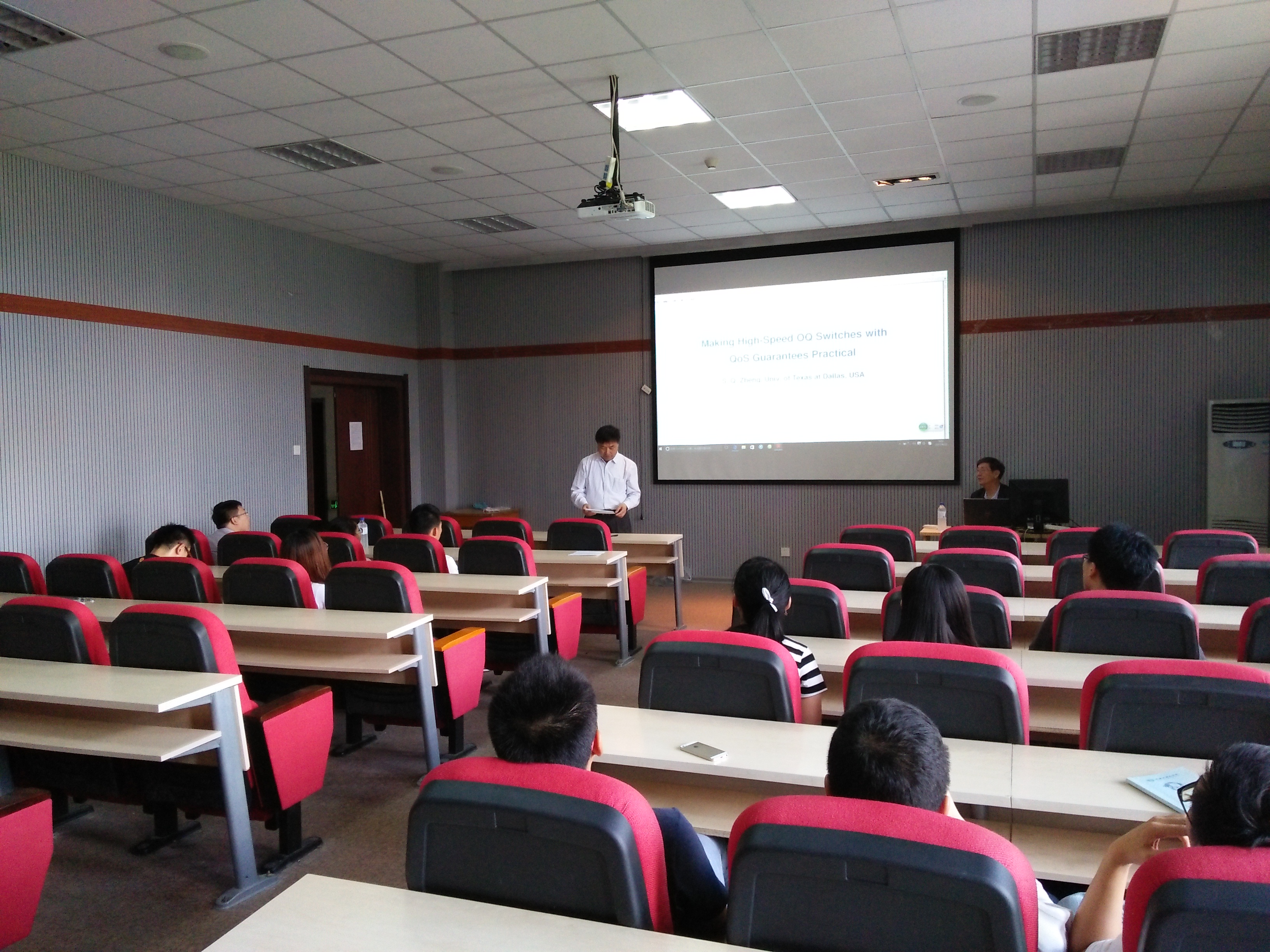 2017年6月22日,郑斯清教授在今年会官方网站计算机学院做了题为“Output-queued switch with performance guarantees”的学术报告。郑斯清教授是美国德州大学达拉斯分校终身教授,今年会官方网站唐敖庆讲座教授,曾经担任过Bononza、Alcatel等多家公司顾问、多个国际著名期刊的特约主编和IEEE并行和分布式系统学报编委。在IEEE Transactions on Computers,IEEE Transactions on Communications,IEEE Transactions on Parallel and Distributed System, IEEE Infocom等国际权威期刊和会议上发表了260多篇高水平学术论文,著书8部,专利16项,承担了美国自然科学基金项目等20余项。