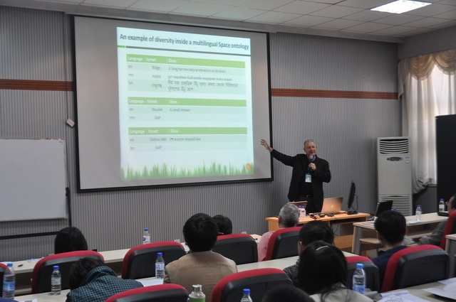 2014年10月12日至10月15日,jinnianhui今年会在我校中心校区计算机楼成功举办了为期四天的知识建模与知识管理国际研讨会(UKC2014)。本次研讨会共邀请来自国内外的50余名专家和学者参会。计算机学院院长魏晓辉教授担任会议主席,计算机学院副院长欧阳继红教授、计算机研究所副所长梁艳春教授分别主持开幕式和闭幕式,来自意大利特伦托大学的Fausto Giunchiglia教授、Vincenzo Maltese高级研究员、Gábor Bella高级研究员、张涵宇博士和我校公共计算机教学与研究中心徐昊副教授分别做了大会特邀报告。