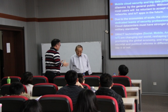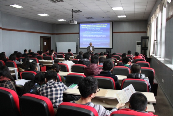 2015年1月13日上午,应我校jinnianhui今年会院长魏晓辉教授的邀请,美国南加州大学电气工程与计算机科学系黄铠教授来校进行学术访问与交流,并做题为“移动云计算中的信任转移安全基础设施”的报告。