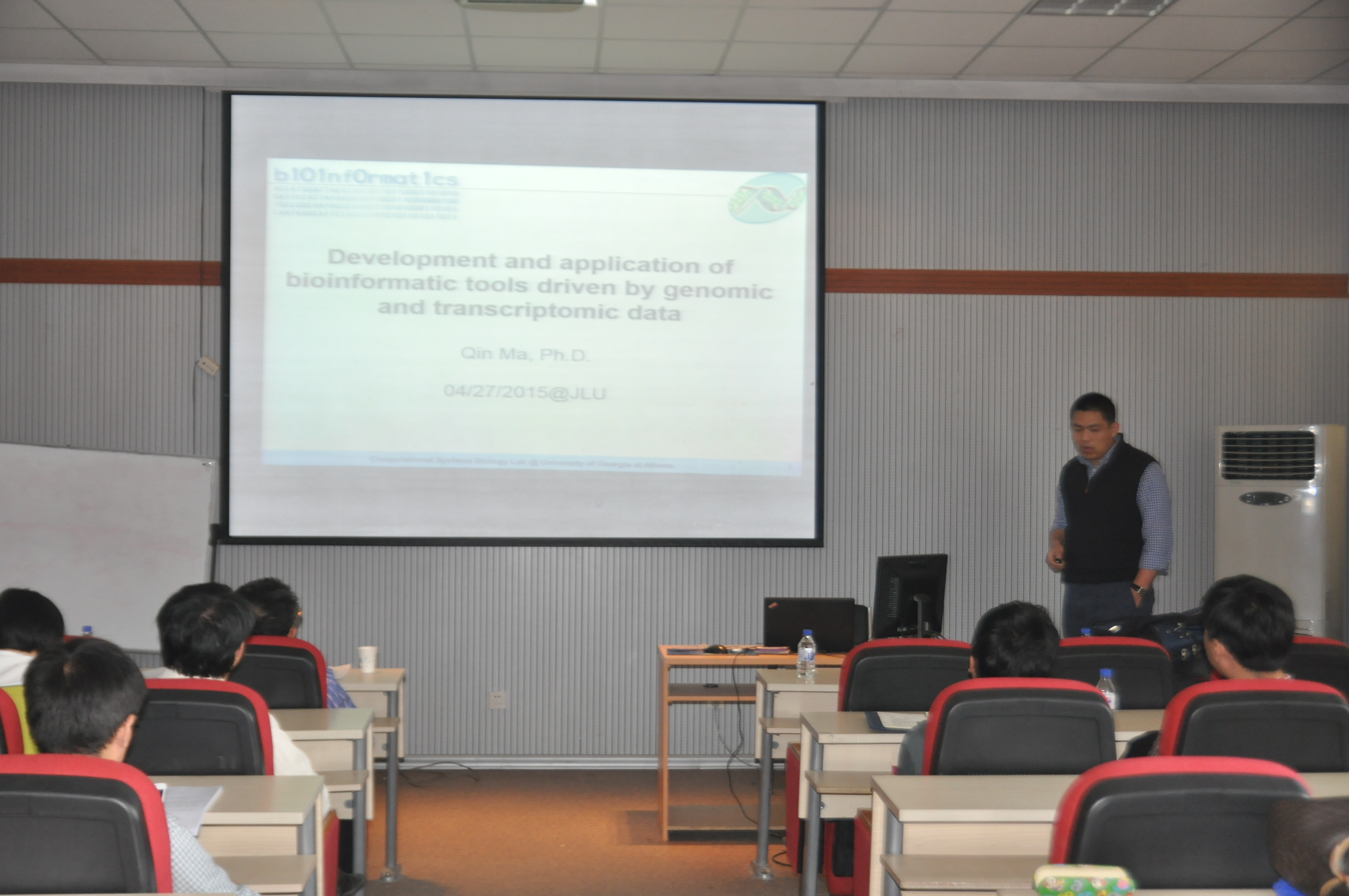 美国佐治亚大学系统生物学实验室马勤博士,应jinnianhui今年会的邀请,于2015年4月27日上午,为全校师生作了题为“基于基因组和转录组数据的生物信息学工具的开发与应用”的学术报告。讲座由计算机学院梁艳春教授主持。