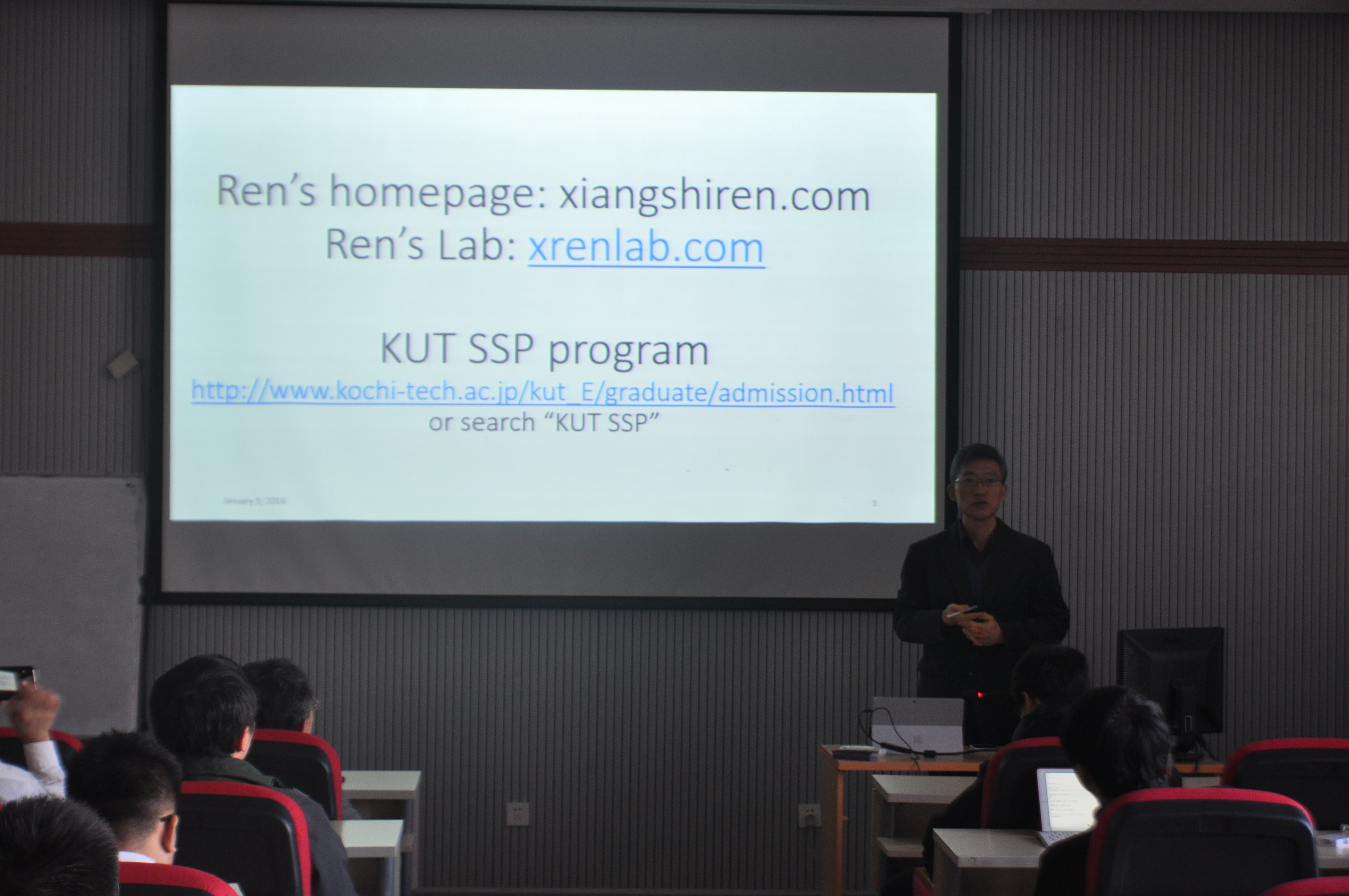 2016年1月5日上午,日本高知工科大学(KUT)信息学院任向实教授应邀在计算机学院做了题目为“Looking for the Future”的报告。任老师结合本人学术经历以及近年的阅读思考,与计算机学院的师生分享了他在治学与人生方面的收获及心得体会,进行了探讨交流。