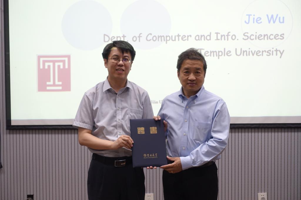 2018年6月12日下午,美国天普大学吴杰教授来我院参加今年会官方网站客座教授聘任仪式,并且为学院师生作了题为“Algorithmic Crowdsourcing and Application in Big Data”的学术报告。聘任仪式和学术报告由计算机学院院长魏晓辉教授主持。