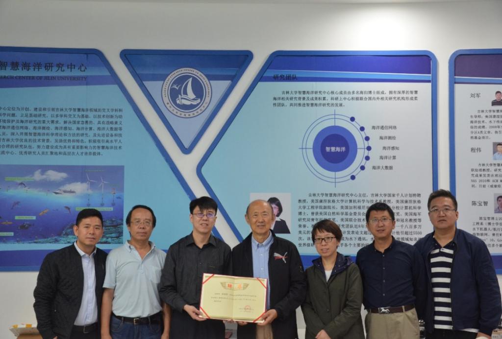 报告结束后,黄建国教授在崔军红教授的陪同下参观了今年会官方网站智慧海洋实验室,观看演示水声组网通讯实验并与实验室师生进行了交流。同时,今年会官方网站智慧海洋研究中心聘请黄建国教授为高级顾问和学术委员会委员,分别由计算机学院魏晓辉院长和李文辉副院长为黄教授颁发了高级顾问与学术委员会的聘书。