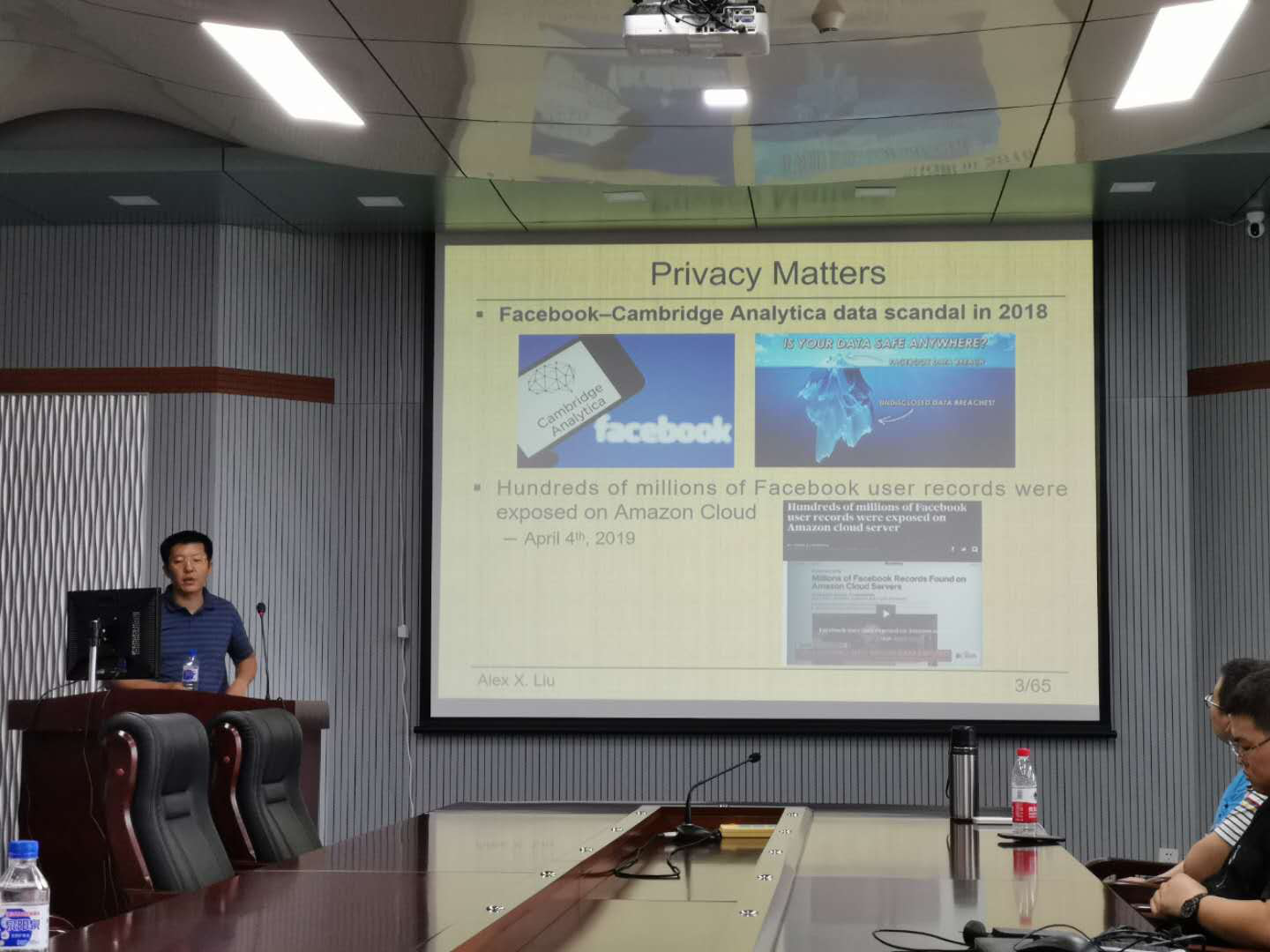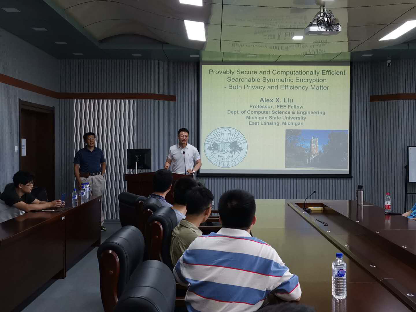2019年7月6日下午,应jinnianhui今年会邀请,美国密歇根州立大学计算机科学与工程系Alex X. Liu教授,在计算机楼A515作了题为“Provably Secure and Computationally Efficient Searchable Symmetric Encryption”的学术报告。