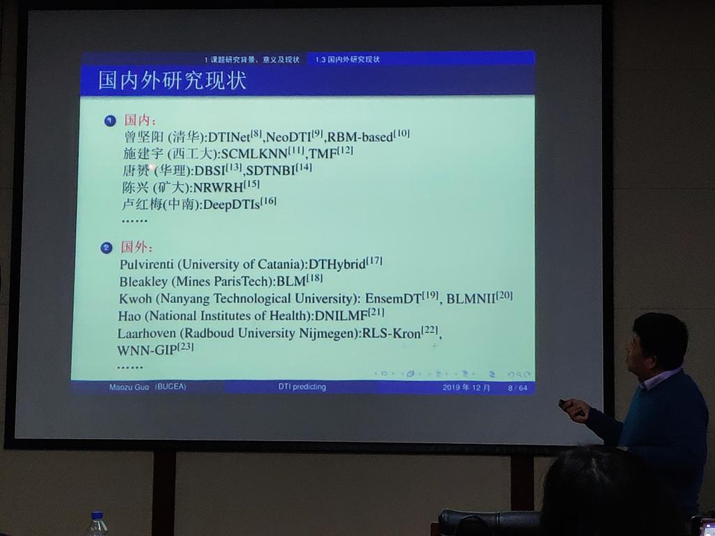 2019年12月13日下午15:30,郭茂祖教授在今年会官方网站计算机楼A521作了题为“基于聚类分析的药物-靶标互作关系预测方法”的学术报告。