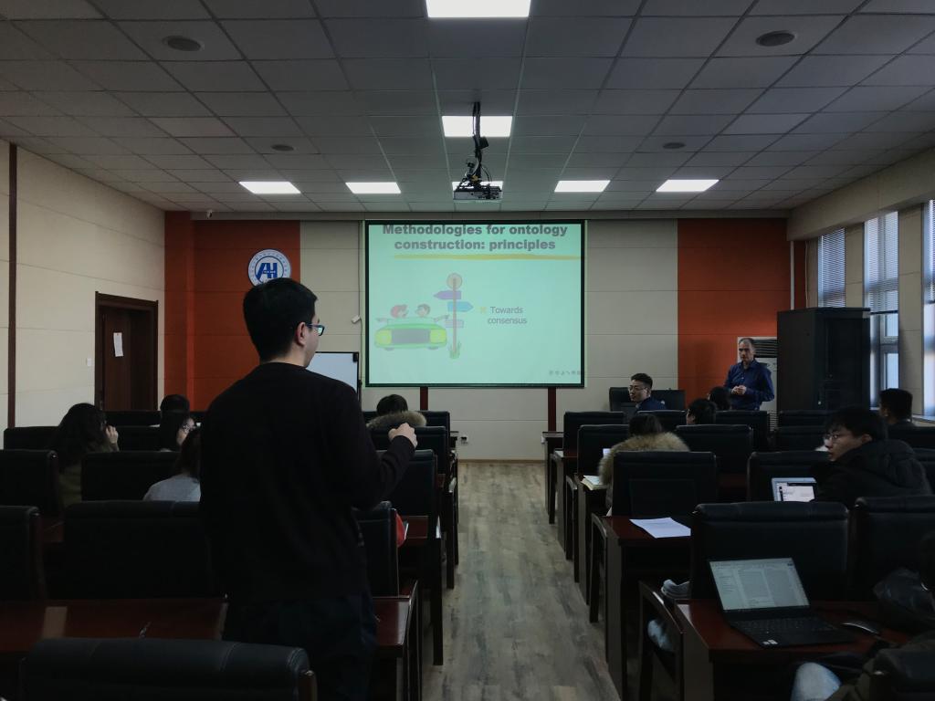 在本次报告中,Rodrigo Martínez-Béjar教授首先介绍了本体的来源,而后介绍了本体在计算机科学的定义,包括本体的概念、属性、价值和公理,还介绍了本体的类型以及本体的构建过程和构建方法的主要特点,包括策略设计、知识搜索和本体的组件构建等。报告结束后,Rodrigo Martínez-Béjar教授还认真回答了同学们提出的关于本体构建和知识表示的问题。本次报告受到了计算机学院师生的热烈响应和一致好评。