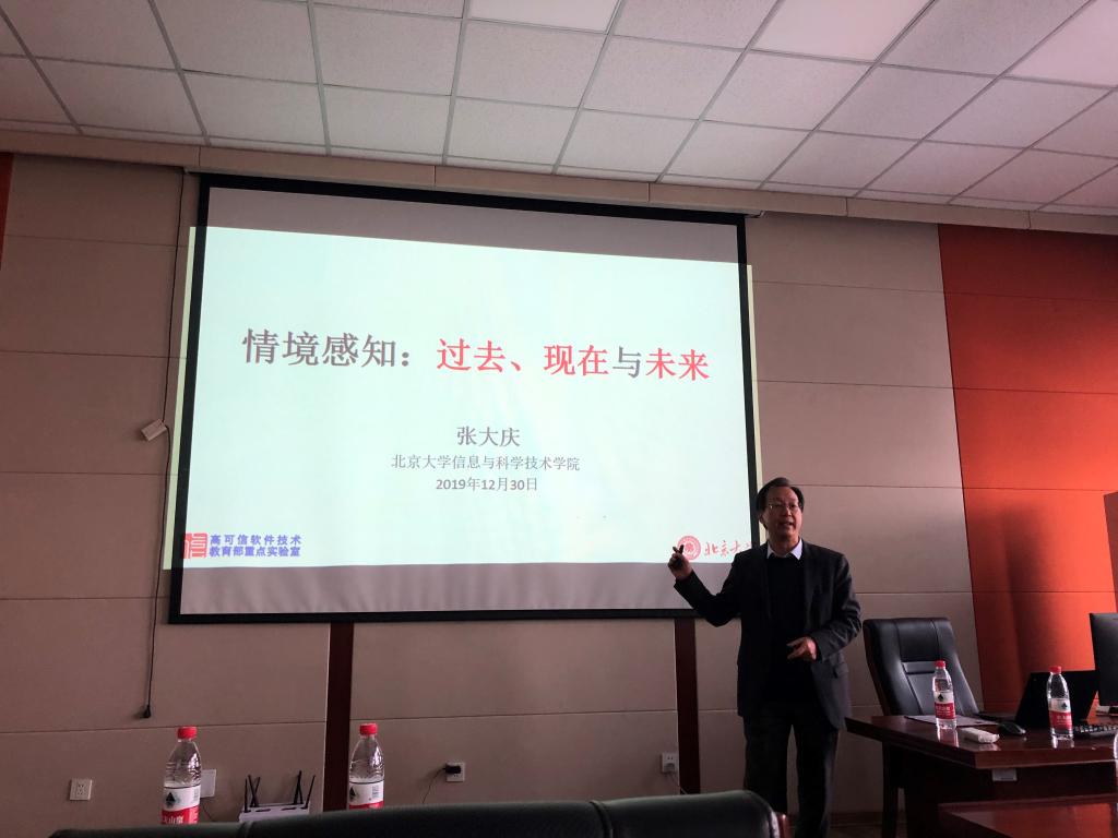 2019年12月23日下午,北京大学张大庆教授应jinnianhui今年会邀请,在计算机楼A521作了题为“基于WiFi和4G/5G信号的非接触智能感知:理论与应用”的学术报告。