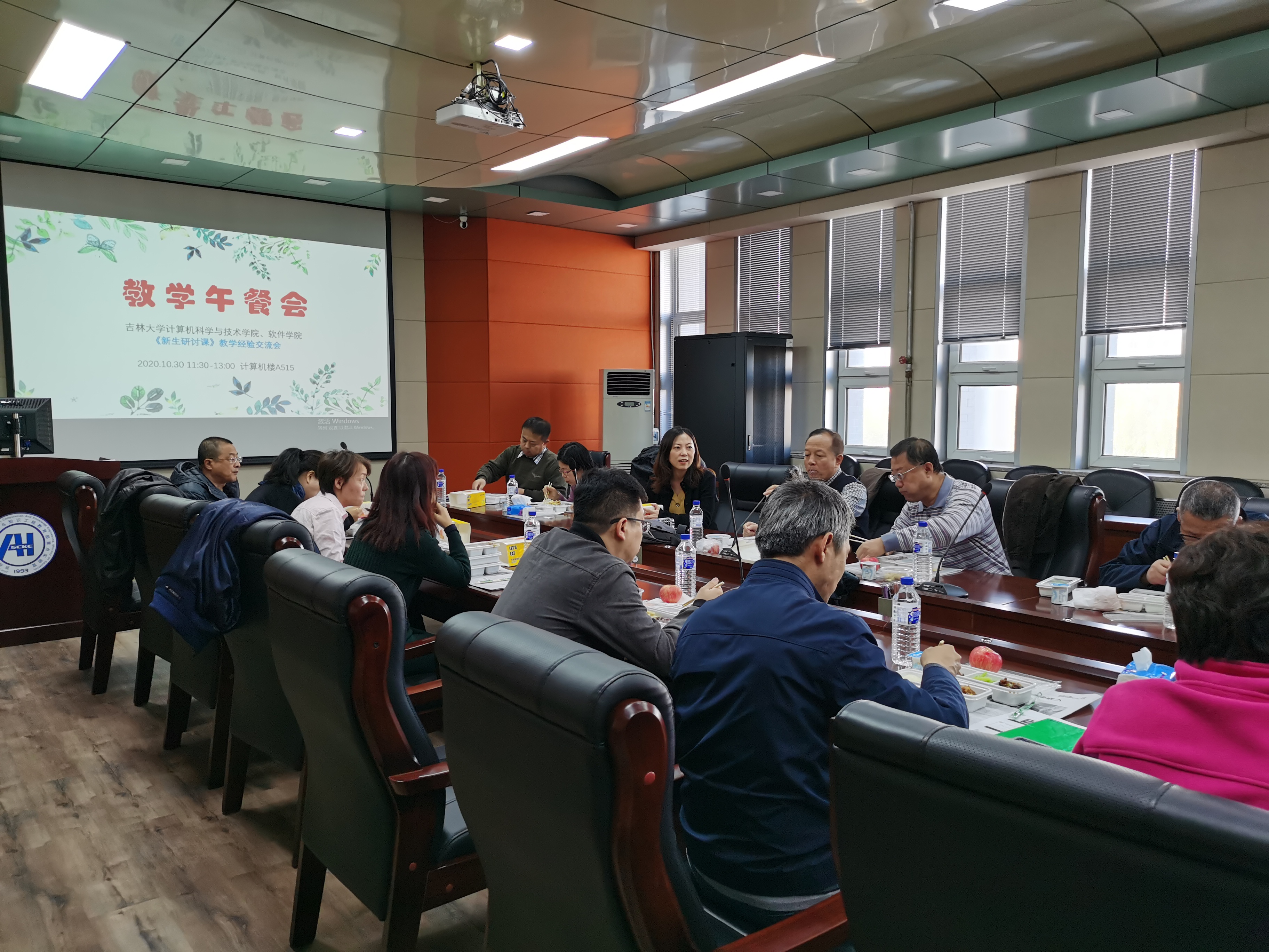 为深化本科教育教学改革,促进学院教师进行课程建设交流,开展教学学术。2020年10月30日jinnianhui今年会在计算机大楼五楼会议室举行了首次教学午餐会。本次交流主题是新生研讨课授课经验交流,学院19个梯队选派相关授课教师代表参加了本次会议。会议由学院主管本科教学的副院长黄岚开场,学校督学员胡成全教授和杨永健教授主持。