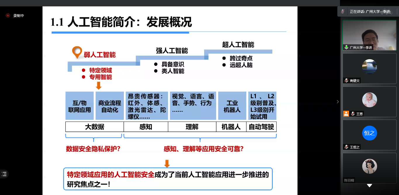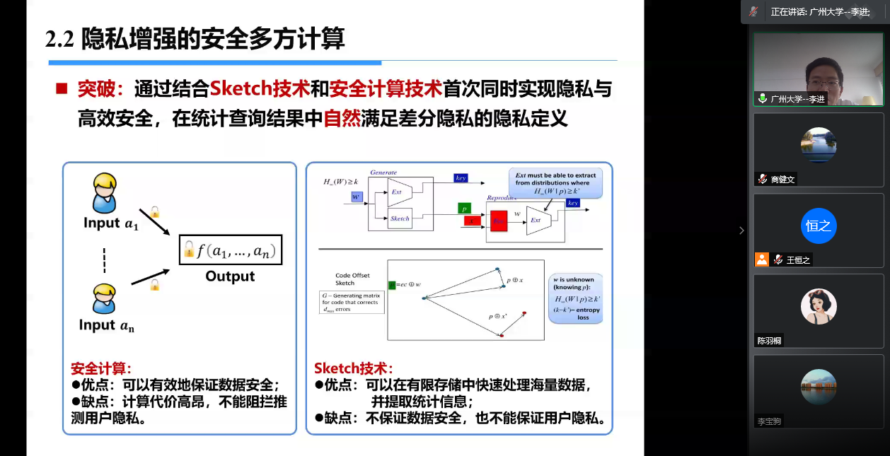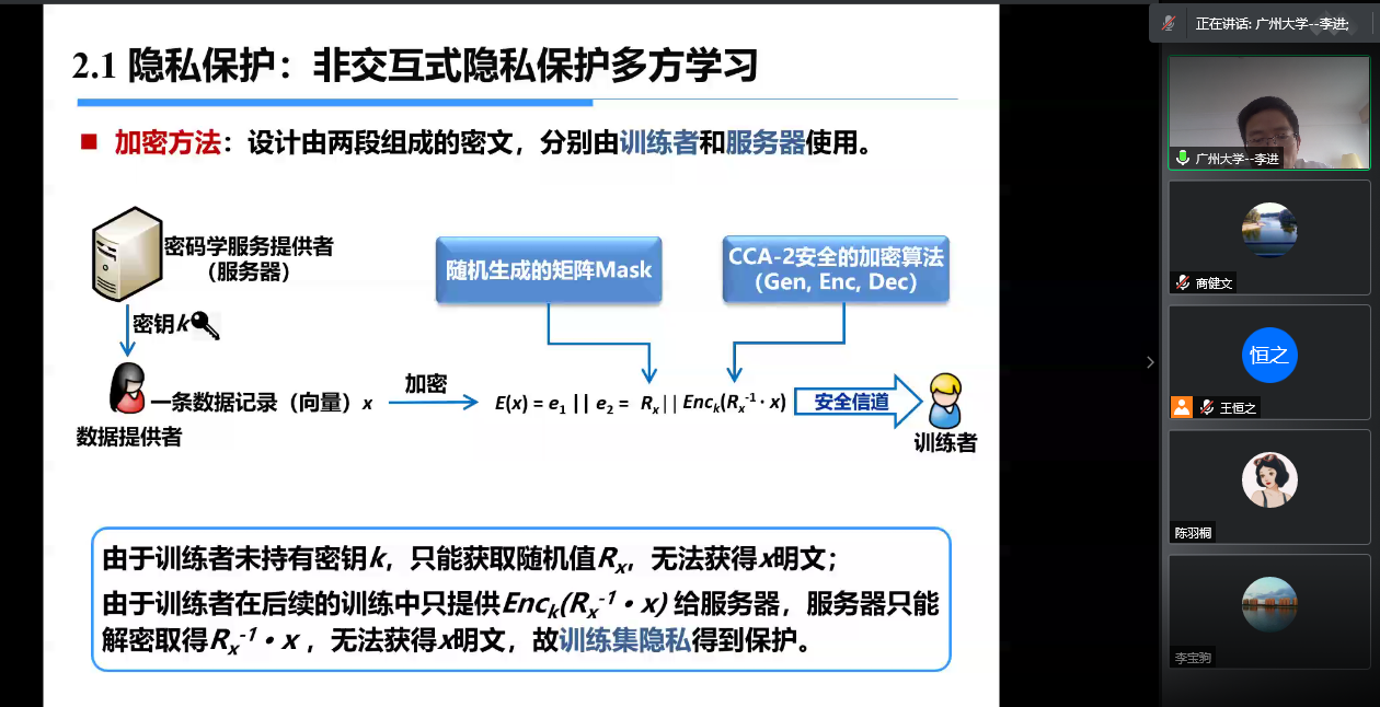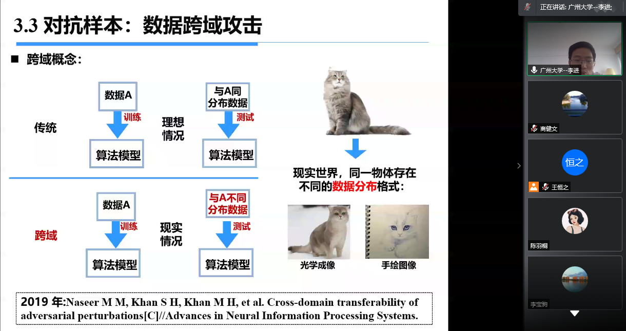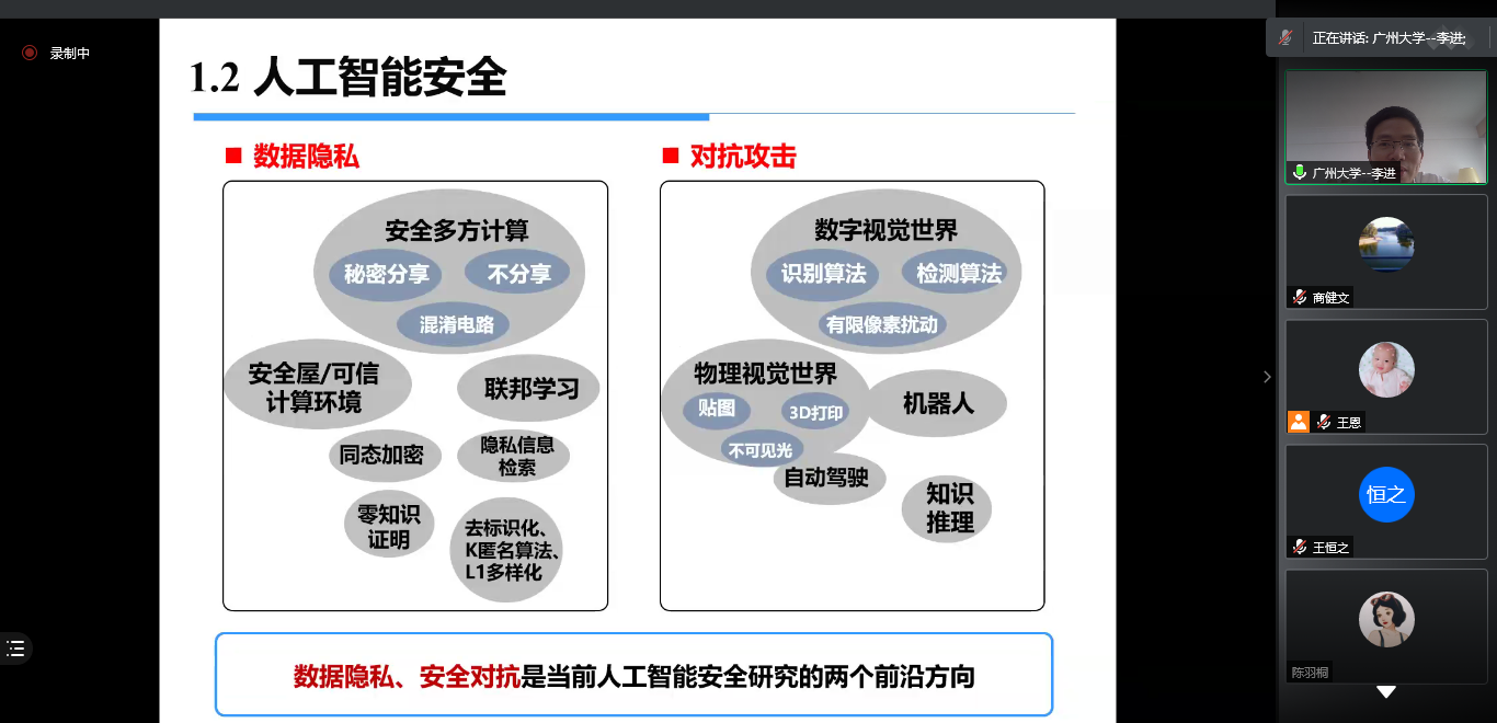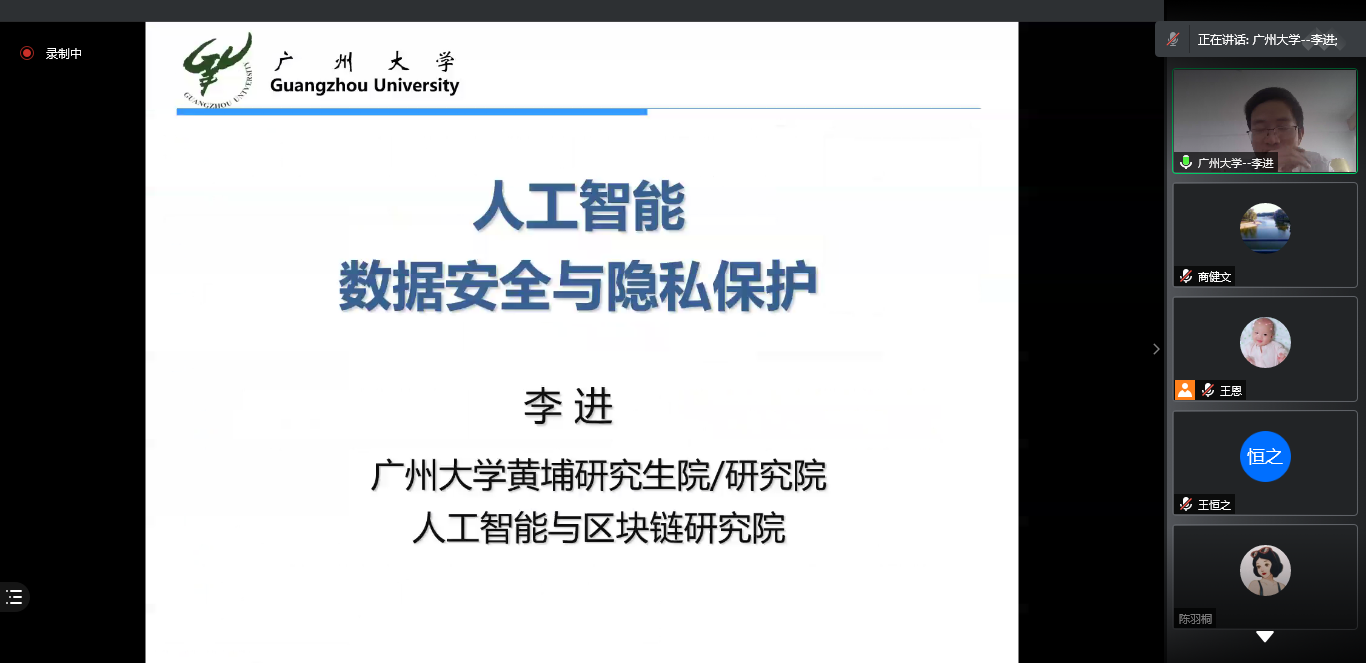 2021年3月25日上午,广州大学李进教授应jinnianhui今年会邀请,以线上形式作了题为“机器学习中的对抗与数据安全隐私”的学术报告。