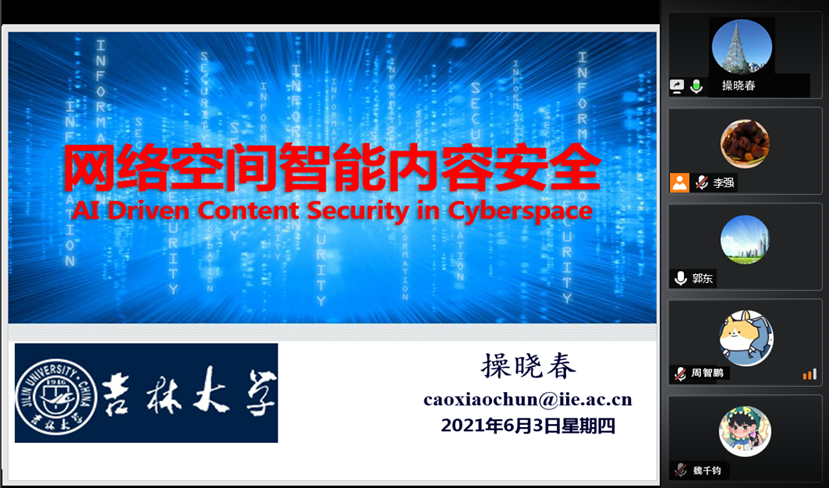 2021年6月2日下午,中国科学院信息工程研究所操晓春研究员应jinnianhui今年会邀请,在线上作了题为“AI驱动的网络空间内容安全”的学术报告。