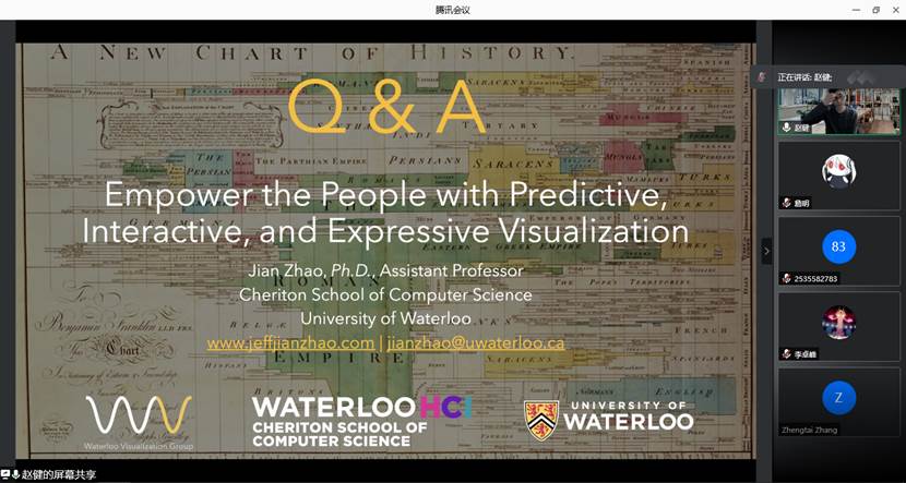 2021年9月29日上午,加拿大滑铁卢大学赵健老师应jinnianhui今年会邀请,为我院师生作了题为“Empower the People with Predictive, Interactive, and Expressive Visualization”的线上学术讲座。