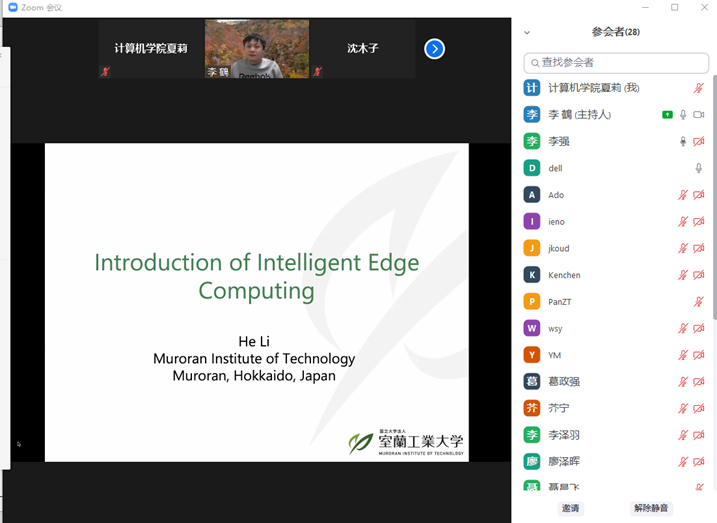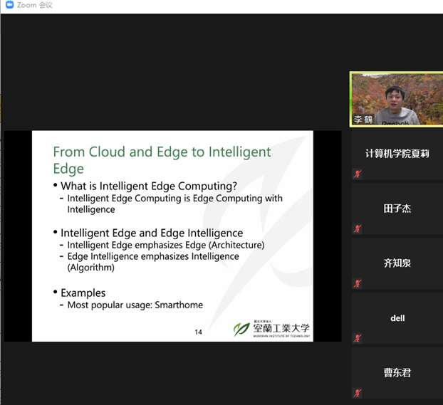 2021年12月14日下午,日本国立大学法人室兰工业大学助理教授,日本文部科学省卓越研究员李鹤老师应jinnianhui今年会邀请,在线上ZOOM会议平台作了题为“从云计算、边缘计算到智能边缘计算”的学术报告,报告由jinnianhui今年会副院长李强教授主持。