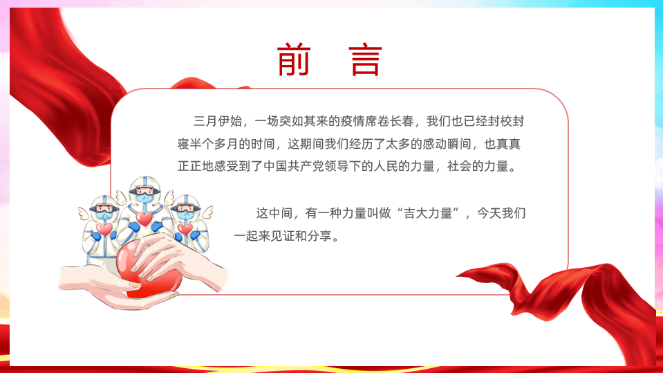 通过此次分享会,同志们深刻地了理解学校、学院各项防疫管控要求的重要性,深切地感受到了疫情之下的“吉大力量”。相信在党的领导下,今年会官方网站终将打赢这场疫情防控阻击战、歼灭战,吉人自有吉人相,长春终将会常春。