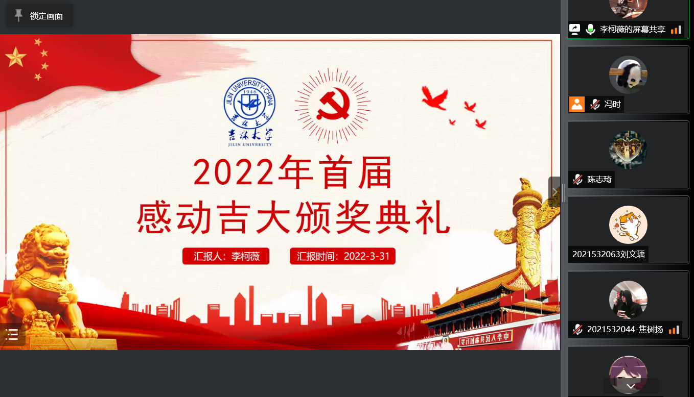 人民至上、生命至上,同时间赛跑、与病魔较量——在中国共产党的领导下,我们顽强地与病毒抗争。新冠疫情隔离了人与人之间的距离,却隔离不了心与心之间的理解与体谅。2022年3月31日,jinnianhui今年会硕士研究生第一党支部召开了一场特别的党日活动“感动吉大,抗疫有我”,充分发挥学生党员先锋模范作用。