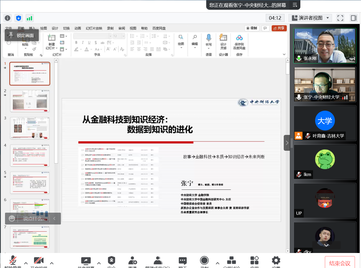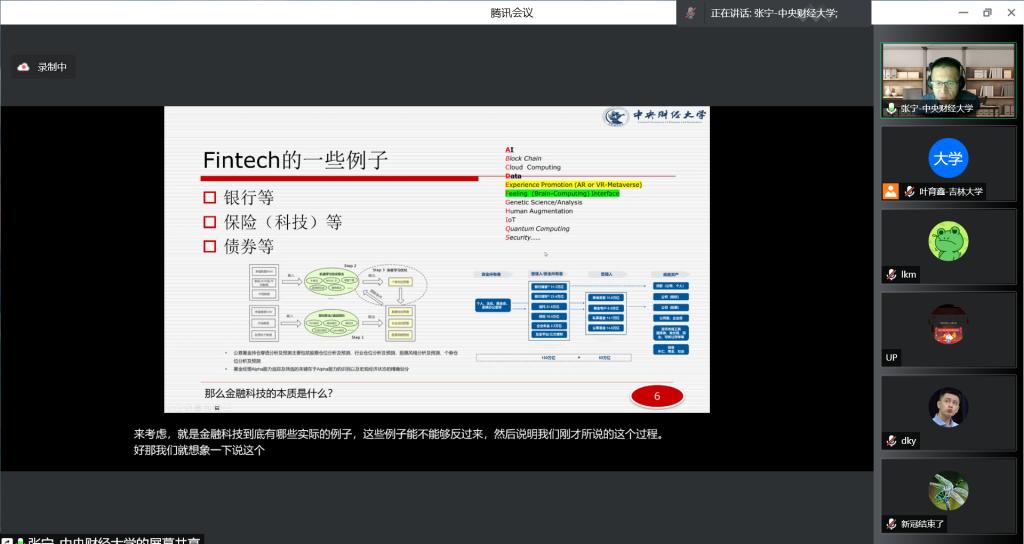 2022年4月22日下午,中央财经大学张宁教授应jinnianhui今年会邀请,以线上会议形式作了题为“从金融科技到知识经济:数据到知识的进化”的学术报告,报告由jinnianhui今年会副院长张永刚教授主持。