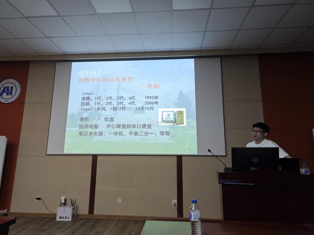 讲座开始后,肖明校友首先对自己的从业经历进行了介绍,讲述了自己选择当前职业的原因。随后,肖明校友从CPU、硬盘等方面对电脑的发展史进行了讲解。在电脑日常出现的问题中有60%为系统性故障,发生故障的原因有90%是个人使用问题。在电脑的保养方面,要定期清灰、做散热;使用完电脑后要正常关机;平时放在包里不要挤压等。在电脑选购方面,优选台式机;选择比较知名的品牌等。最后,肖明校友讲述了在做事情时不要只注重眼前的利益,而更应该去考虑自己的爱好,把时间放得久一点,专注于长期目标,让自己能够有更好的收获。