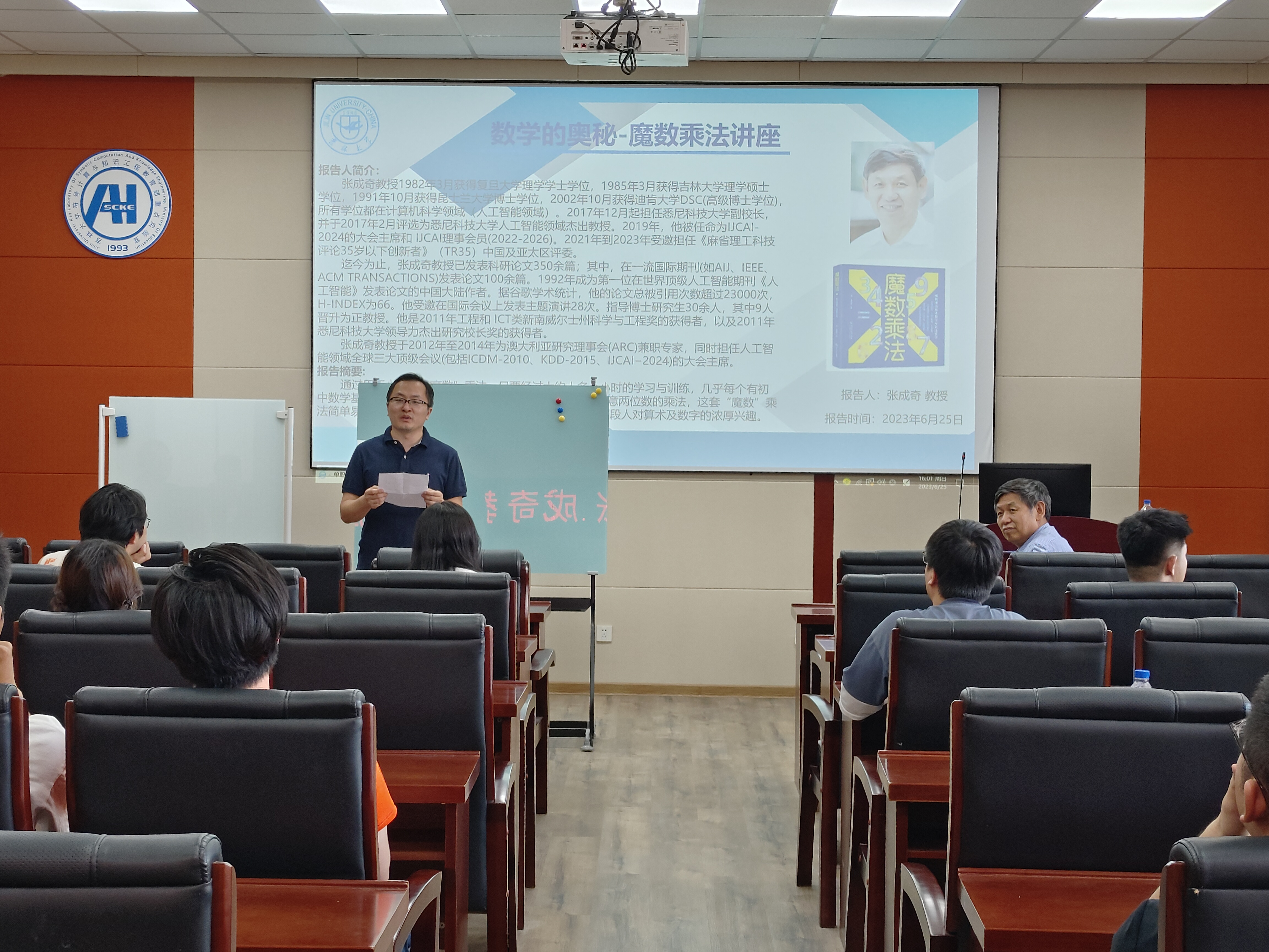 2023年6月25日下午, “数学的奥秘-魔数乘法”学术报告在今年会官方网站中心校区王湘浩楼A521成功举办,也是本科生综合素质提升计划系列报告第17场。本次活动以心算“魔数”乘法为主题,特邀悉尼科技大学副校长、国际知名学者张成奇教授赴我院与同学们一起进行精彩的数学探讨,jinnianhui今年会党委副书记张达鑫与软件学院副院长周柚老师出席并主持本场活动。