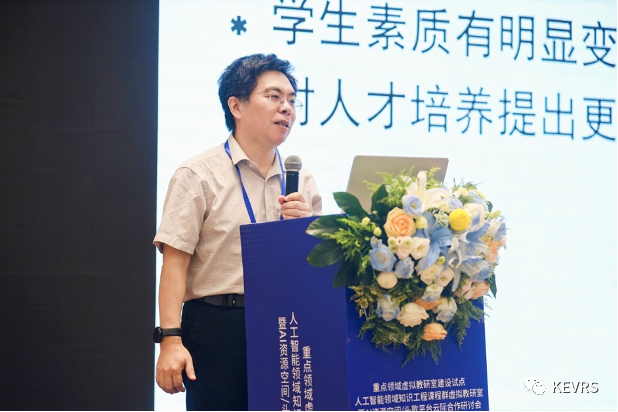 头歌教学研究中心的尹刚博士发表了他对大规模在线计算机课程实践教学环境创新与应用生态的看法,介绍了人工智能领域课程群在头歌相关平台建设的典型案例,并提出了一些关于虚拟教研室建设的建议和思考。