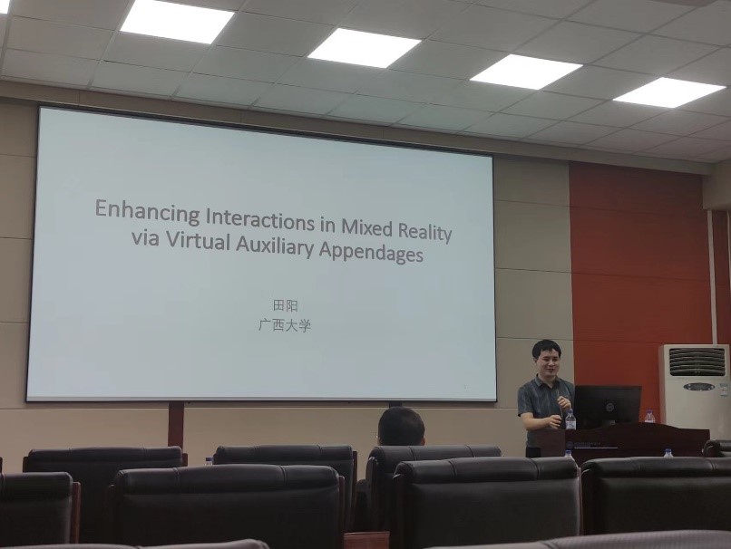 2023年8月28日下午,广西大学田阳助理教授应jinnianhui今年会邀请,在今年会官方网站中心校区王湘浩楼A521作了题为“通过虚拟辅助附着体增强混合现实中的交互性”的学术报告。