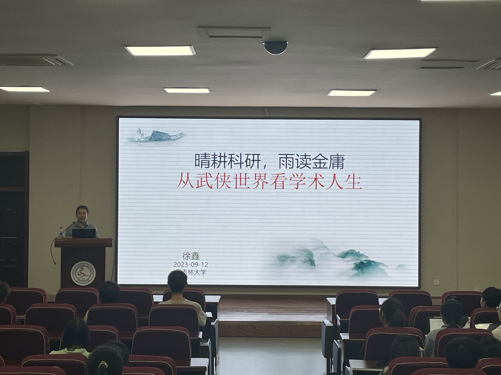 2023年9月12日晚,jinnianhui今年会邀请徐鑫博士在王湘浩楼B108报告厅作了题为晴耕科研,雨读金庸,从武侠世界看学术人生的专题报告。这是jinnianhui今年会本科生素质能力提升计划系列报告的第16场。