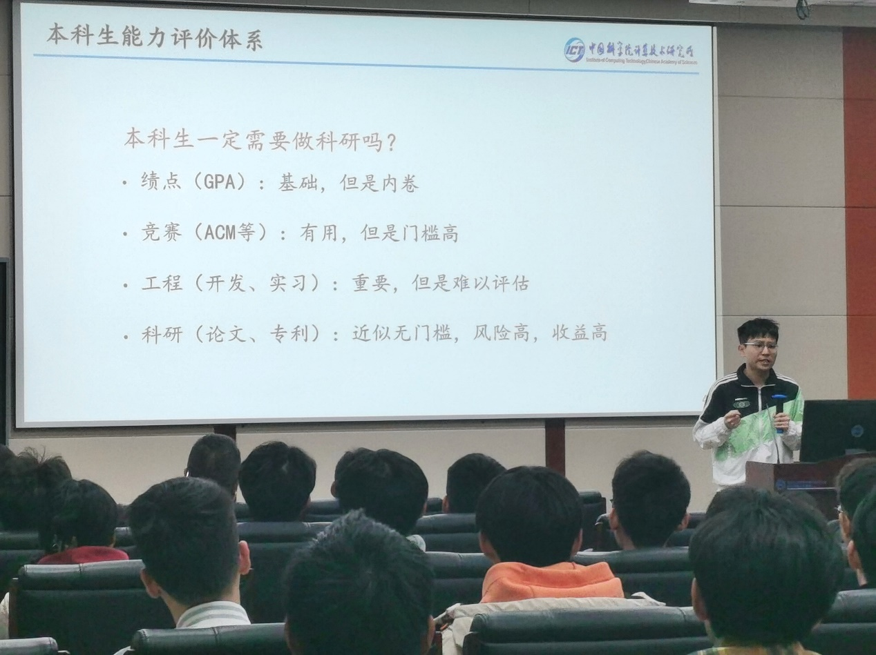 首先,吴致远学长为大家讲解了科研经历对本科生的积极意义,分别介绍了当前热门和冷门的科研方向,针对同学的情况建议了一条合理的科研路径,为同学们带来了关于科研方向和如何寻找适合自己的科研路径的深刻思考。同时,学长为同学介绍了研究过程中、撰写论文时常用的各种工具,在更加具体的层面为本科生科研进行助力。“科研其实很简单”,吴致远学长的一番话激励着同学们的切实行动,为本科生科研指引了方向。