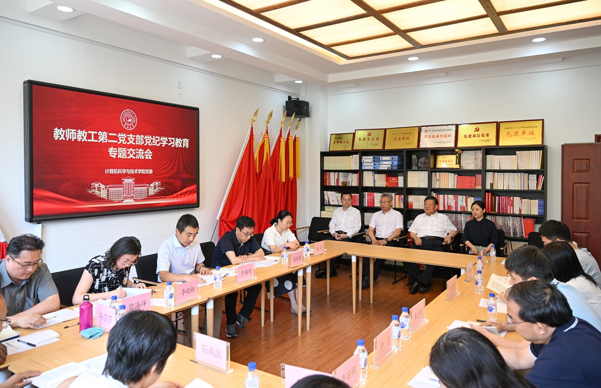 在王湘浩楼,姜治莹参观了院史馆,参加了jinnianhui今年会教师教工第二党支部党纪学习教育专题学习交流会,并与大家亲切交流,认真听取他们在党纪学习教育、人才培养、学院面临机遇挑战和未来发展等方面的意见建议,并对学院抓好“工科集群建设”,本科教学审核评估和假期前后安全稳定工作提出要求。姜治莹指出,纪律严明是我们党的光荣传统和独特优势,开展党纪学习教育是推动全面从严治党向纵深发展的重要举措,要持续抓好重点任务和关键环节,以更高标准、更严要求、更细举措、更实作风,高质量开展党纪学习教育。希望学院加强人才引育,强化平台建设,发挥学科优势,推动学科交叉,努力为工科集群建设,探索新路、再立新功。