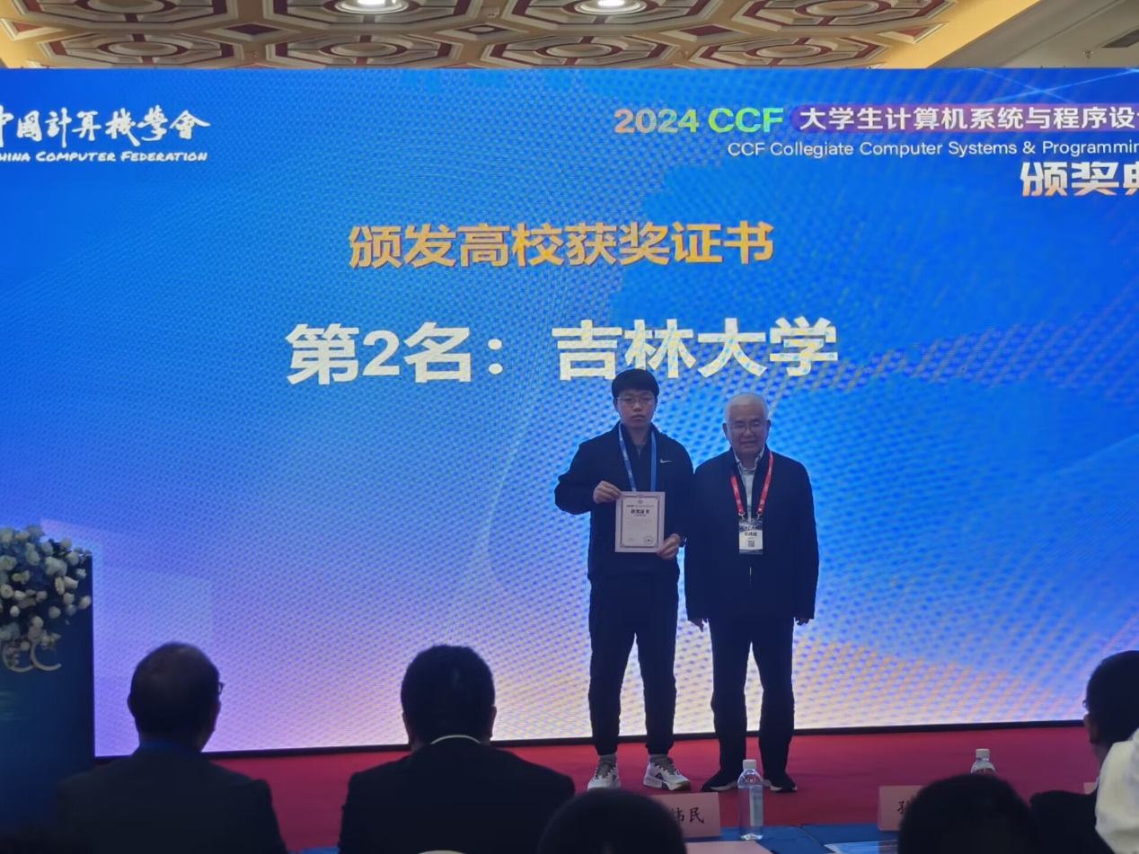 2024大学生计算机系统与程序设计竞赛(CCSP)于10月23日至24日在浙江师范大学举行。本次比赛全国有70余所高校的430名优秀选手参赛,经过约12个小时马拉松式的比赛,共产生金奖43名、银奖85名、铜奖127名。计算机学院谷方明老师作为教练率领6名优秀本科生代表今年会官方网站参赛,共获得金奖3名、银奖2名、铜奖1名。其中,徐梓博同学名列第2,获全场亚军和金牌;赵星宇同学列第14名,获得金牌,武锦旗同学列第28名,获得金牌;陈鹏旭、周宇恒和孔泉智获得2银1铜。我校在所有参赛学校中脱颖而出,团体成绩排名位列清华大学之后,勇获全国第2名和东北第1名的历史最佳成绩,充分展示了今年会官方网站本科教育教学成果和今年会官方网站本科生的风采。