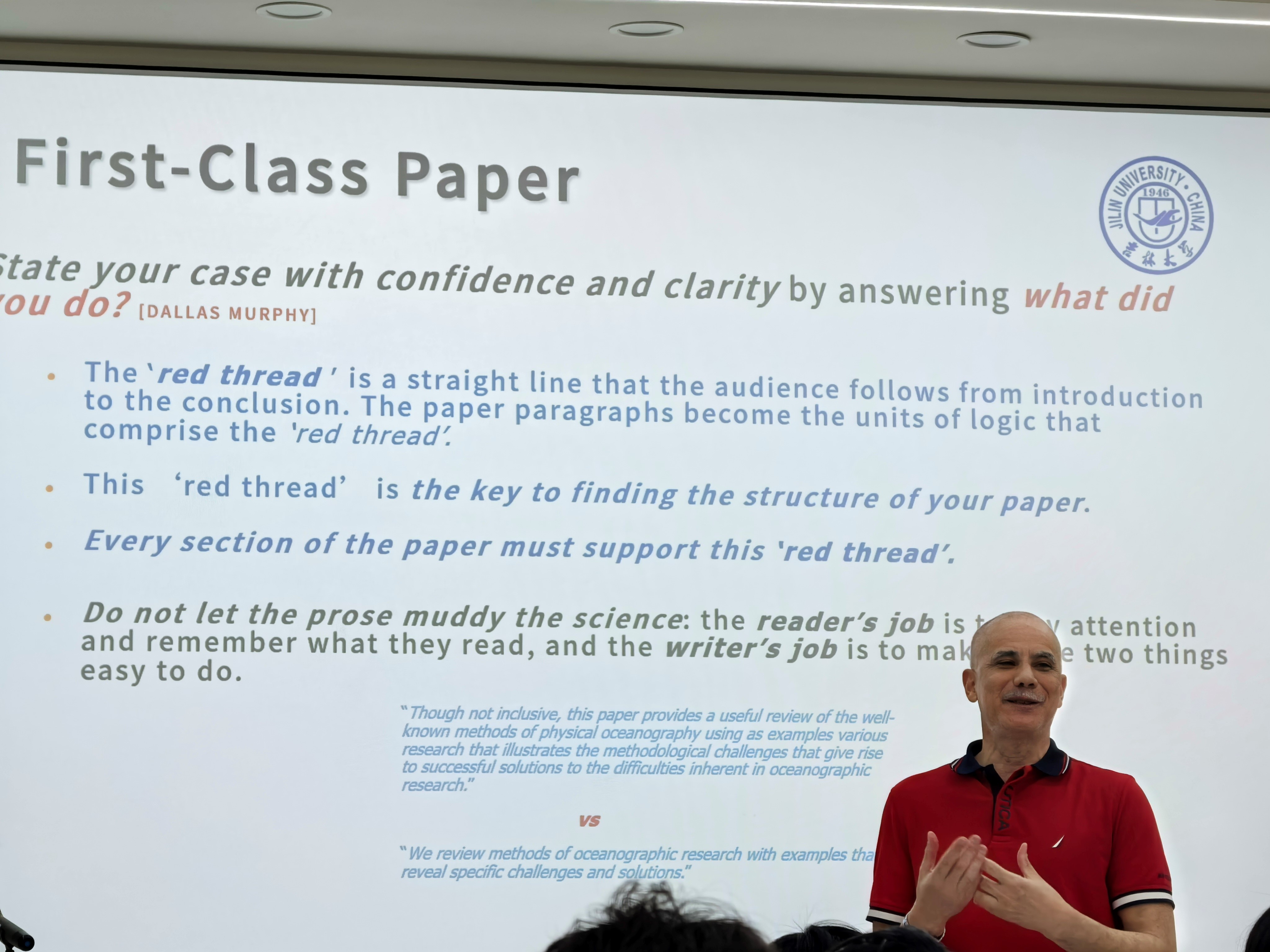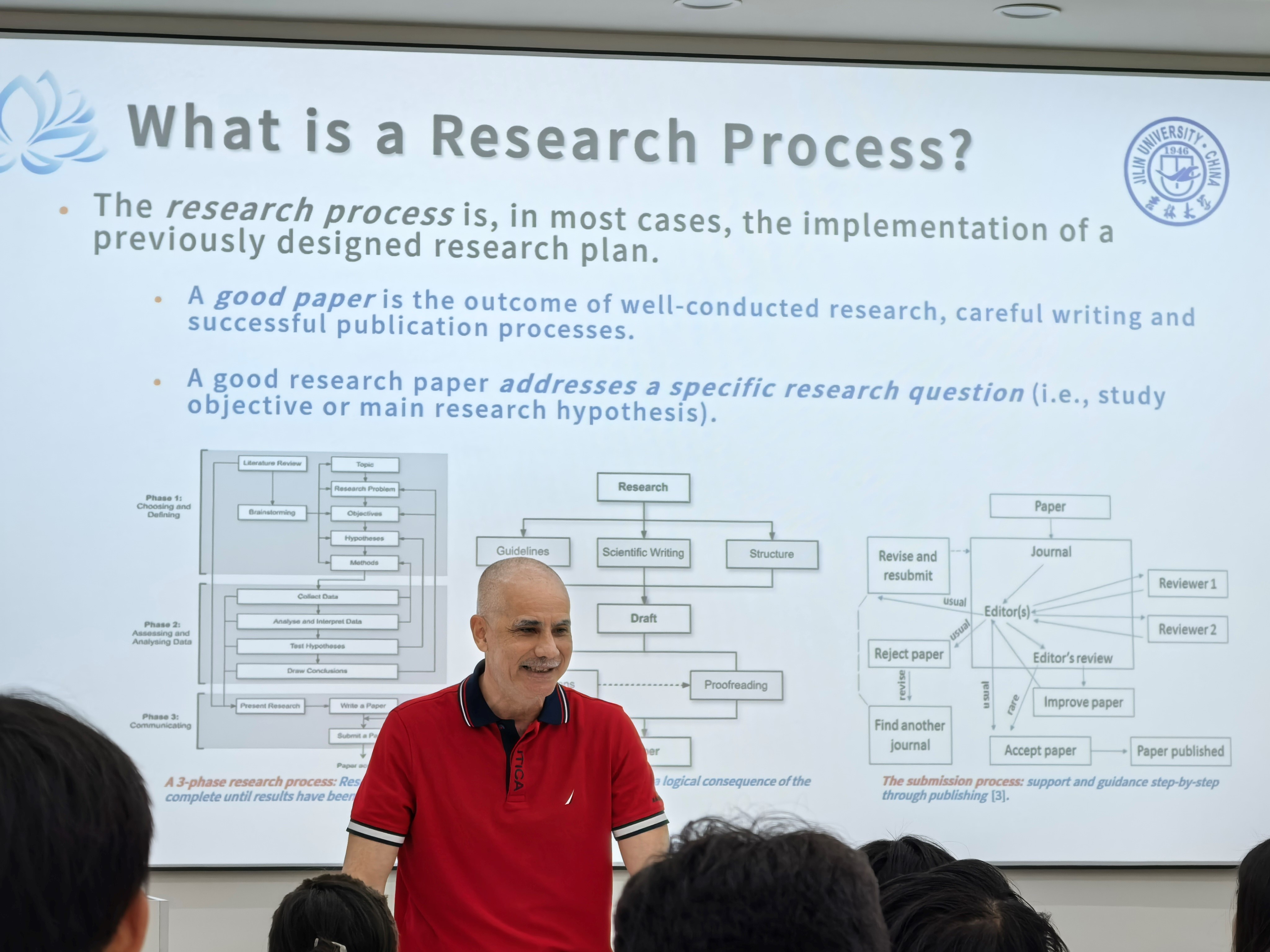 报告中,Adriano Tavares教授从研究、写作到提交的全过程深入探讨了撰写高质量研究论文的关键要素。他强调,成功的研究论文应当体现出扎实的研究、严谨的写作以及有效的发表过程,三者缺一不可。首先,Adriano Tavares教授强调学生需要对所研究的主题具备深入的理解,其次要广泛参与各种来源的研究,最后则需在学术讨论中提出原创的观点和见解。他鼓励同学们保持对研究工作的热情,并逻辑清晰的构建自己的论点。Adriano Tavares教授还分享了一些实用的写作技巧,包括如何保持论文结构的连贯性,让读者能够从引言顺利跟随到结论。在提问环节,博士耐心地解答了同学们的疑问,提供了许多宝贵的建议。