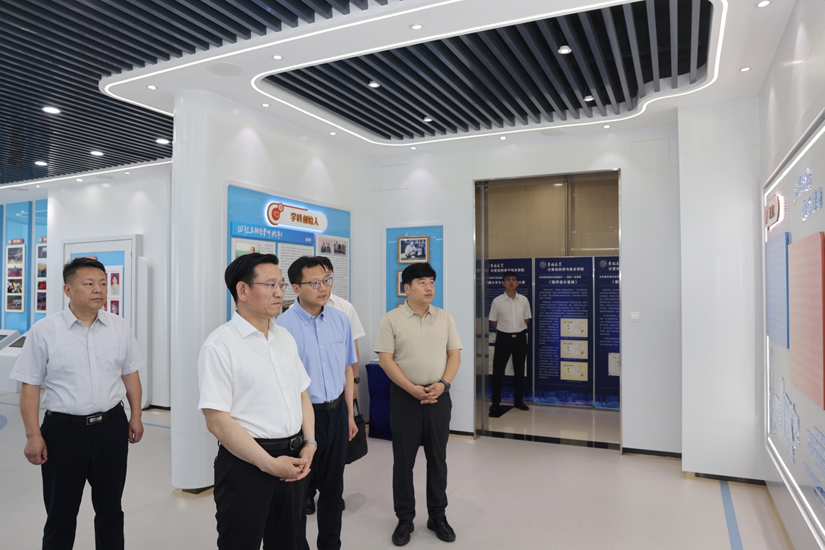 在王湘浩楼,田辉参观了学术交流中心、院史馆,并与学院领导班子、教师代表座谈交流,听取学院党建工作、事业发展情况汇报。田辉指出,党的十八大以来,以习近平同志为核心的党中央高度重视人工智能发展,出台一系列重大政策、作出一系列战略部署,希望学院深入学习习近平总书记重要指示重要批示精神,深刻把握数字化、网络化、智能化时代潮流,努力在人工智能新赛道上跑出加速度、抢占制高点,成为学校加快“双一流”建设的重要引擎和支柱力量。