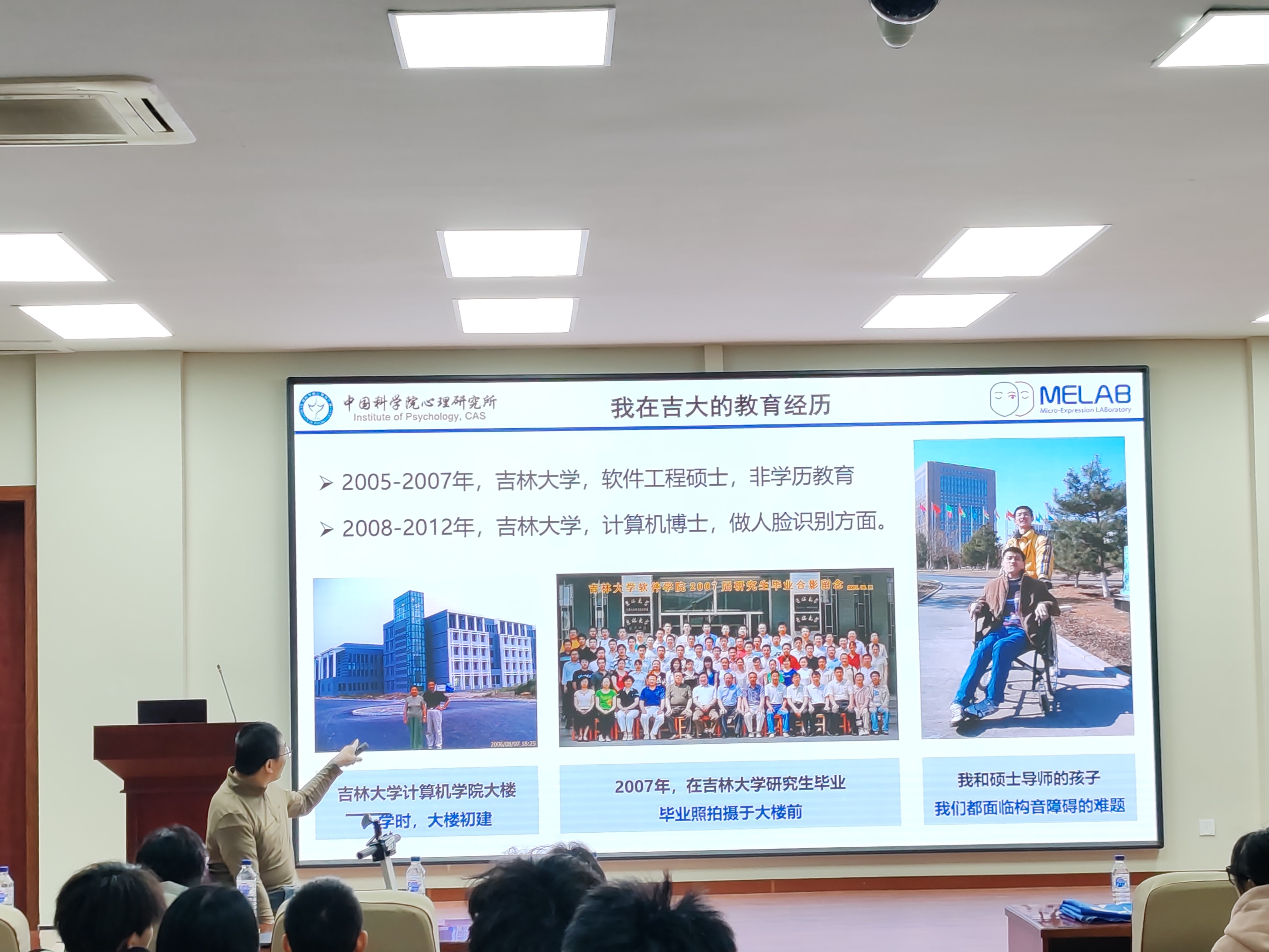 首先登场的是今年会官方网站2012届优秀校友、中国科学院心理研究所青年特聘研究员王甦菁老师,他以《我在今年会官方网站——I@JLU》为题,分享了自己在母校求学时的成长历程与科研启蒙,并介绍了团队在无障碍智能技术方面的最新探索。王老师用自己的经历诠释了科研之路上的坚持与勇气,他在逆境中不懈求索的精神深深感染了在场师生,赢得热烈掌声。