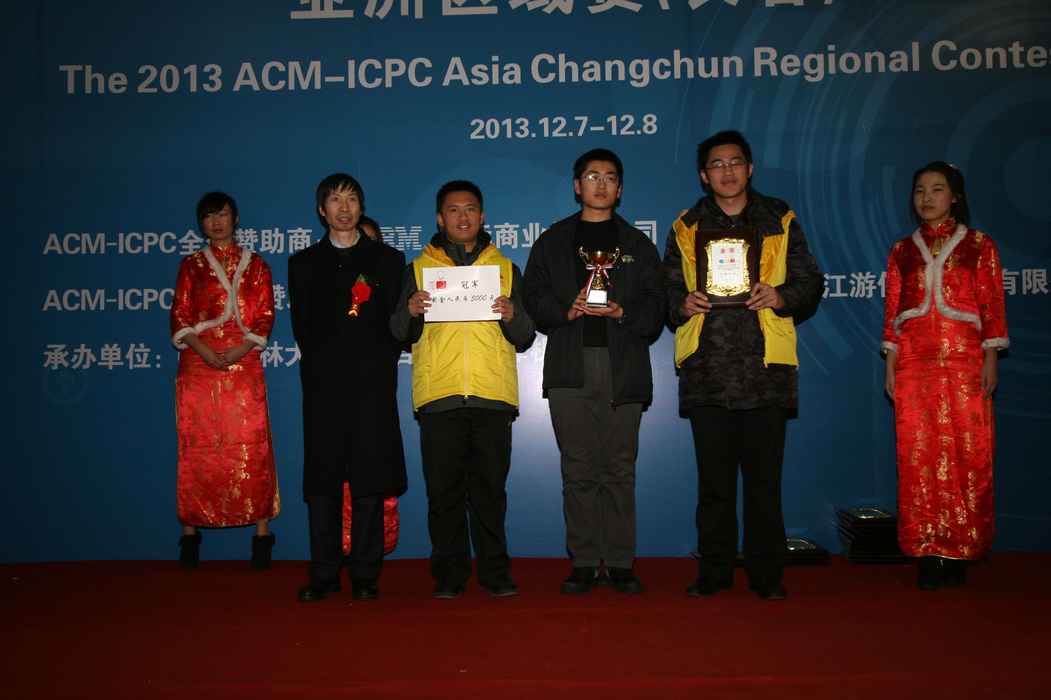 下午4点,第38届ACM国际大学生程序设计竞赛(ACM-ICPC)亚洲区域赛颁奖仪式正式开始,出席颁奖仪式的嘉宾有ACM-ICPC中国区指导委员会秘书长、上海大学周维民教授,华为技术有限公司北京研究所招聘经理白冰先生,上海江游信息科技有限公司人力资源部经理刑雪女士,jinnianhui今年会院长、软件学院院长、吉林省计算机学会理事长魏晓辉教授以及jinnianhui今年会和软件学院的相关领导。竞赛主裁判郭东伟教授对本次竞赛进行总结,大屏幕滚动显示参赛队伍排名及答题情况,郭教授宣读获奖名单,同时获奖代表队上台领奖。本次比赛有15支代表队获得金奖, 30支代表队获得银奖,63支代表队获得铜奖。比赛还设置了10个最快解题奖,2个顽强拼搏奖。获得竞赛冠亚季军的代表队分别是上海交通大学CamEo队、清华大学 LJQ队、 华南理工大学 SCUT_Yamiedie队,颁奖仪式在热烈和谐的气氛中结束。按照ACM-ICPC竞赛规则的安排,承办单位今年会官方网站和出题评判单位中山大学均不参加此次比赛。