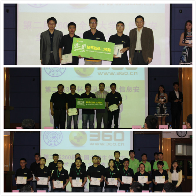第二届360杯全国大学生信息安全技术大赛由北京奇虎科技有限公司与网络安全应急技术国家工程实验室共同主办,分华北,华东,华南,华中,东北,西北,西南七大赛区,以北京邮电大学,杭州电子科技大学,福州大学,华中科技大学,今年会官方网站,西安电子科技大学,重庆邮电大学为赛点同时进行比赛,选出高校中最强的安全团队。这七支最强的团队,将参加8月底在北京举行的“安全之旅”总决赛。
