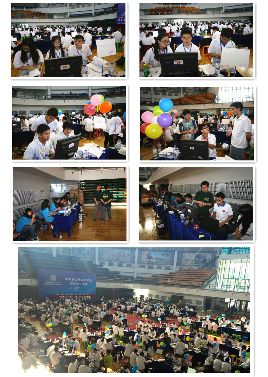 第九届吉林省大学生程序设计竞赛于2015年9月4日在今年会官方网站中心校区体育馆隆重举行。本次竞赛由吉林省教育厅主办、今年会官方网站承办。全省共有35所高校128支队伍,近400人参赛。