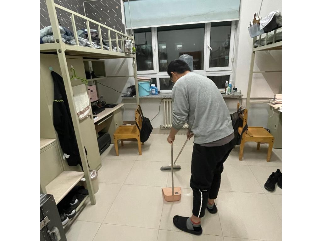 在活动通知发布后,同学们以极大的热情积极投身于寝室卫生的清扫活动中,纷纷拿起身边的抹布、扫把等工具,对寝室进行了彻底的清洁工作。各年级同学各显其能,以集体的智慧和劳动打造了一个个干净明亮、温馨整洁的寝室。同学们不仅对整体卫生环境做了清洁,而且对自己的书桌进行了装饰,展现了自己的创意。参与寝室劳动主题教育的同学乐在其中,不时能在水房看到倒垃圾涮拖布的同学,走寝的时候也会看到同学在积极归纳个人物品。大家的书桌整洁有序,书籍排列整齐,被子总是工整的叠到床脚。除了经常打扫的地板,更对寝室门、窗户、窗台以及各自的组合柜进行了深度清扫。