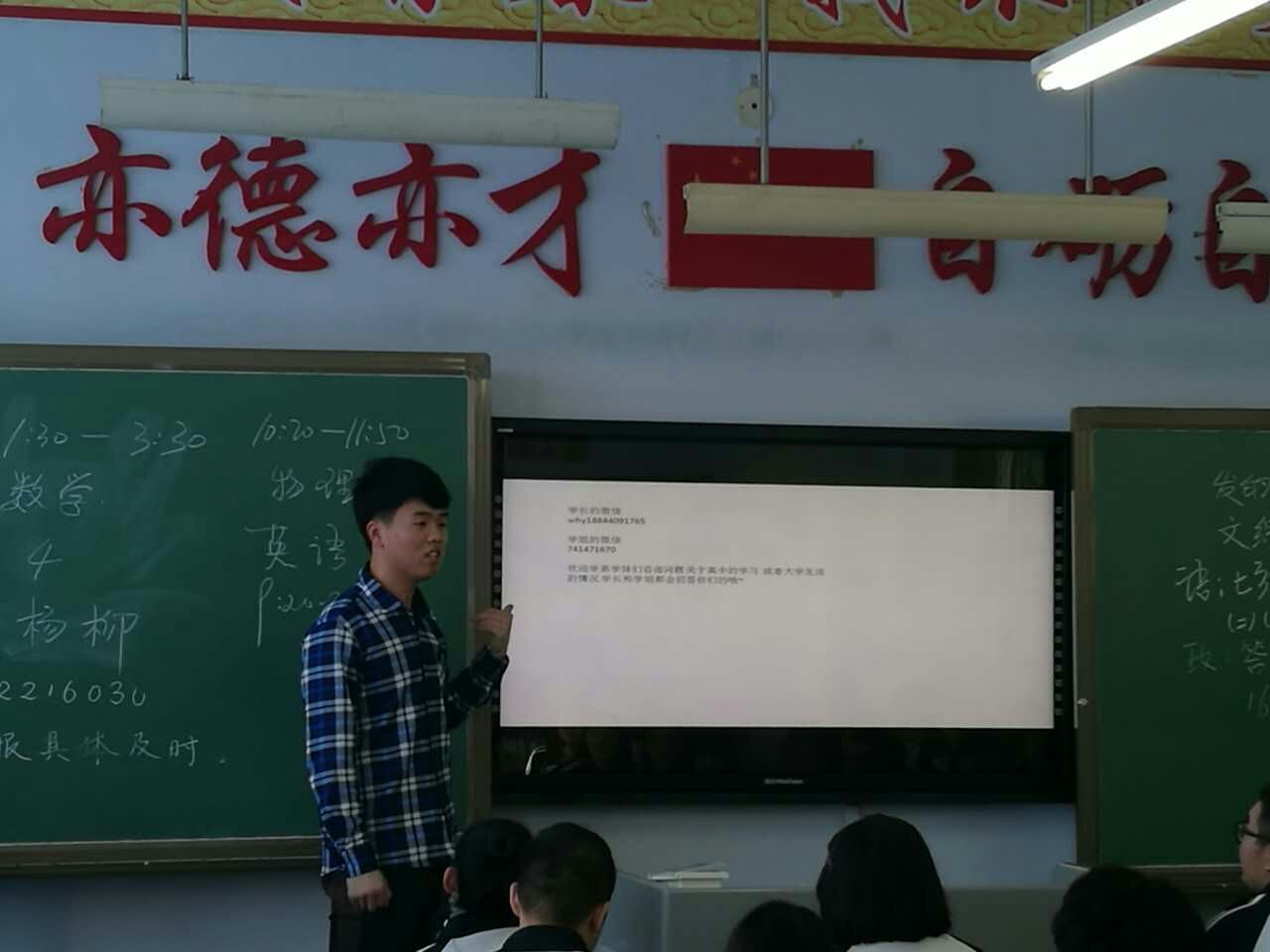 为迎接十九大顺利召开,让更多高三学子深入了解今年会官方网站,2017年1月20日,计算机学院物联网工程2016级同学王宏多和两个队员在高中母校辽宁省盘锦市高级中学展开了宣讲活动。