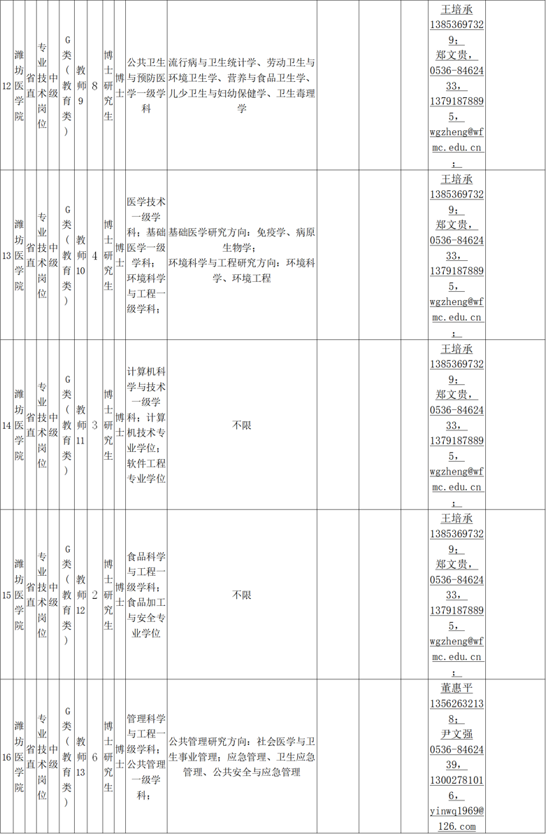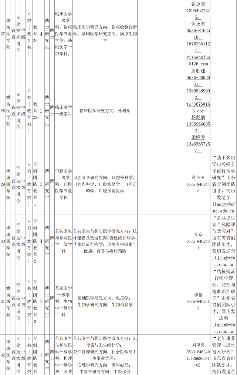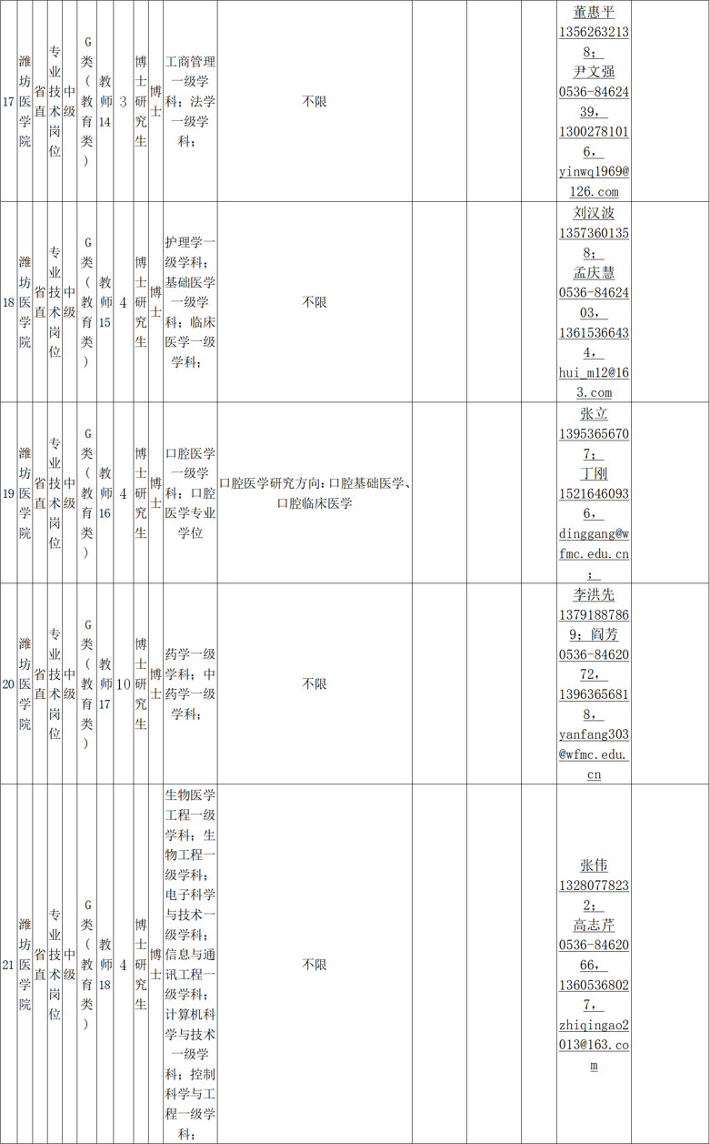 联系地址:山东省潍坊市宝通西街7166号潍坊医学院人事处