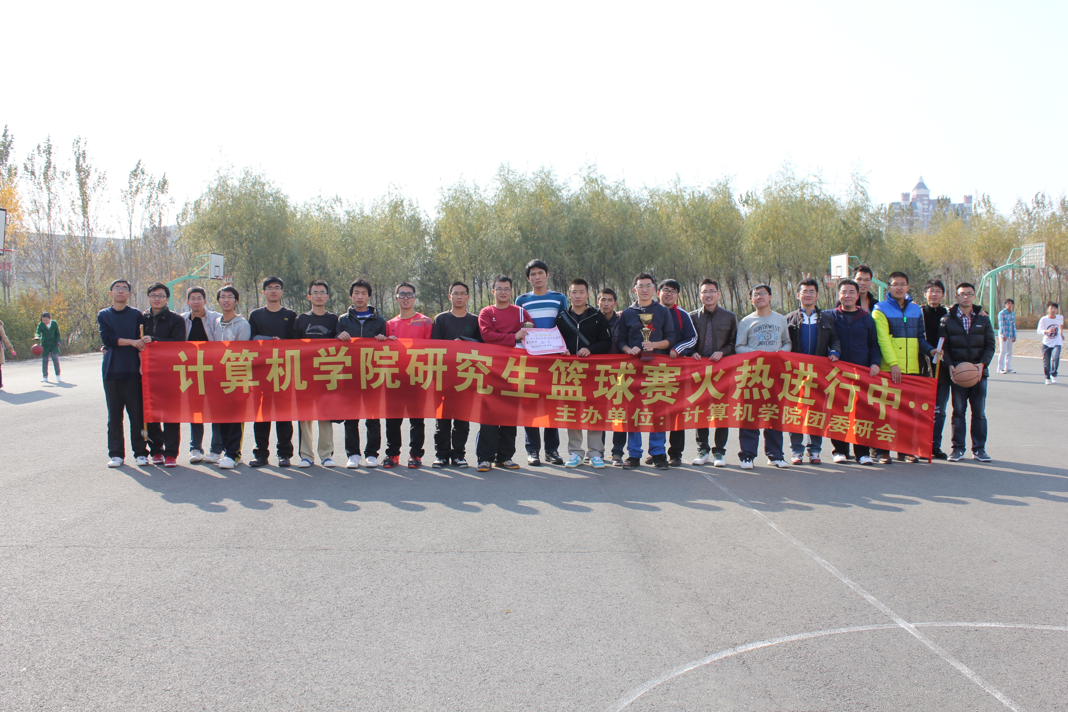 为了营造和谐的课余文化氛围,展现学生运动风采,增强学生体质,同时提高班级凝聚力,培养团队合作精神,计算机学院团委研究生会于10月15日中午12点在新篮球场拉开了“以球会友展竞技,以赛促情助团结”的迎新篮球赛。